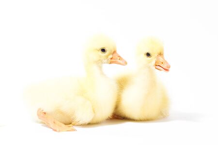 Little yellow fluffy cute gosling in a pile of other goslings.