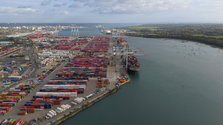 Southampton, Hampshire, England, October, 26, 2025: DP World Southampton Container Terminal Aerial