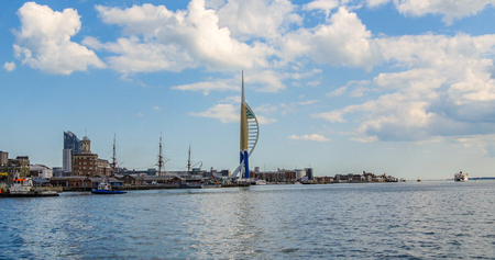 Gosport, UK - September 8, 2020: View of Gosport Marina with a number of yachts involved in the Clipper Round the World race moored in the sunshine.