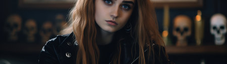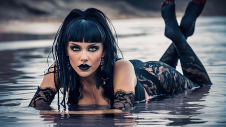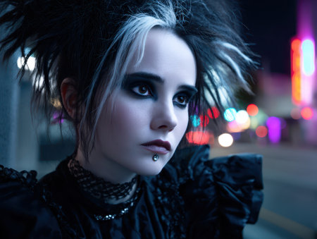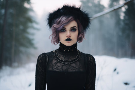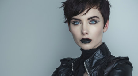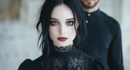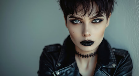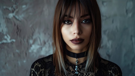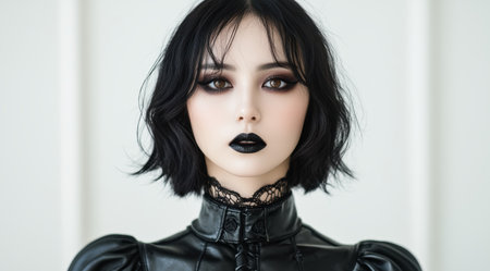 Striking portrait of a gothic woman with dramatic makeup and dark attire