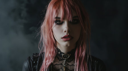 Adult White Woman with Pink Straight Hair Goth style Illustration.