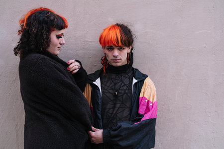 Portrait of a transgender couple with painted hair.