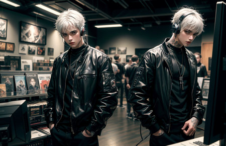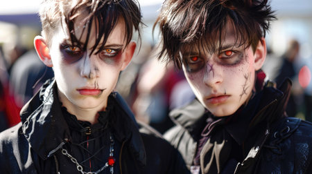 Girl boy emo. Fashion cute people. Generate AI