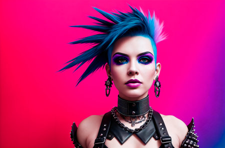 Rebel Woman with a Mohawk and Studded Leather Jacket Staring Defiantly into the Camera