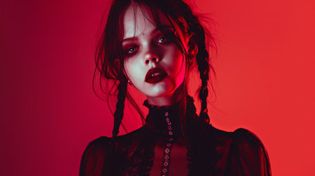 Mysterious gothic woman with dark makeup and braids
