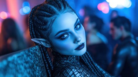 Futuristic alien woman with braided hair and glowing skin