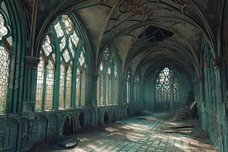 Decrepit Abandoned gothic castle. Creepy inside. Generate Ai