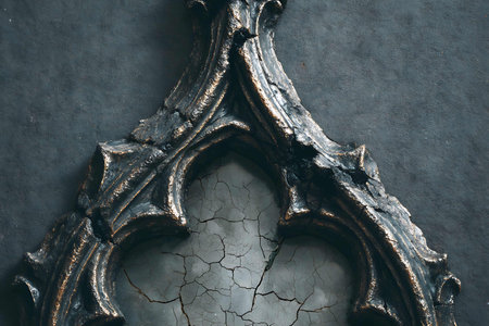 A detailed view of a dark medieval doorway set within an aged stone wall, showcasing intricate ironwork and a rich historical texture, adding character.