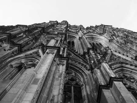 Koelner Dom Hohe Domkirche Sankt Petrus (meaning St Peter Cathedral) gothic church in Koeln, Germany in black and white