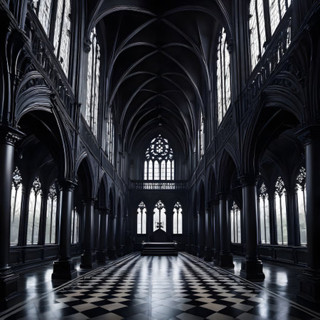 Gothic architecture illuminates spirituality inside famous basilica generated by artificial intelligence