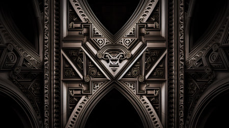 Skulls and pentagrams adorning every surface --ar 3:2 Job ID: d64f62ef-0a3d-4cc1-bf2e-691b404defe2