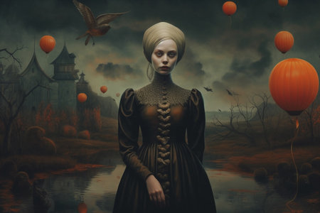 Close-up portrait of a beautiful gothic woman. Halloween.