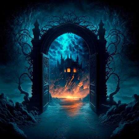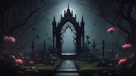 Scary Gothic gates in the style of fantasy. high quality illustration