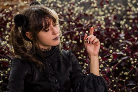 Portrait of a Victorian woman in mourning. Black widow in an atmosphere of mystery and mysticism. Halloween.