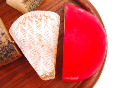 Assortment of traditional Dutch hard old cheeses made from cow milk close up isolated