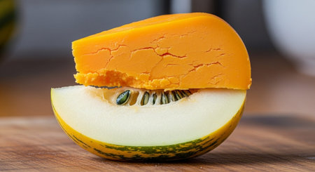 Close-up portrait showcases gourmet cheeses allure with an emphasis on texture