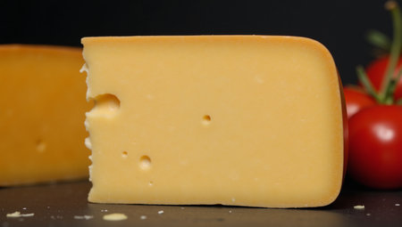 Cheese collection, piece of young Dutch gouda cheese made from cow milk in Netherlands close up