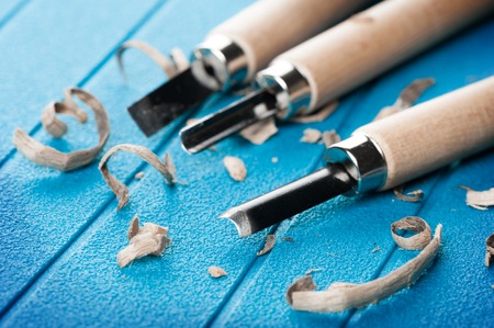 Wood processing. Joinery work. wood carving. a wood carvings tools on the wooden background. use as background
