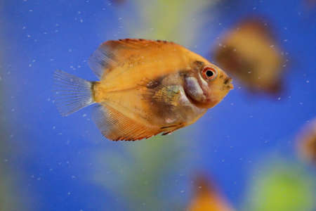 Aquarian fish floats in an aquarium