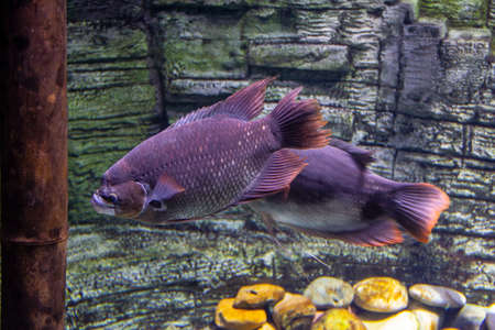 Beautiful Fish oreochromis tanganicae in aquarium close up.