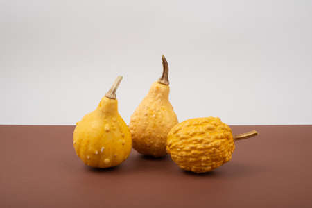 Decorative pumpkins on a white background. Pumpkin is a symbol of the beginning of autumn and the Halloween holiday.