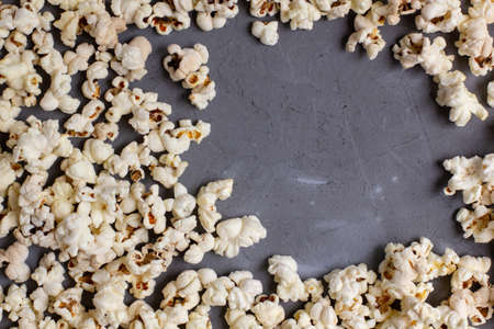 Popcorn on a black background. Top view. Copy space.