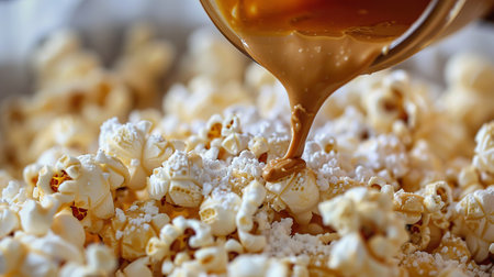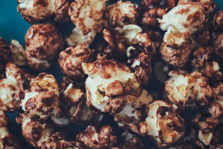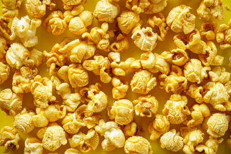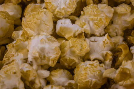 sweet caramel popcorn texture background closeup macro
