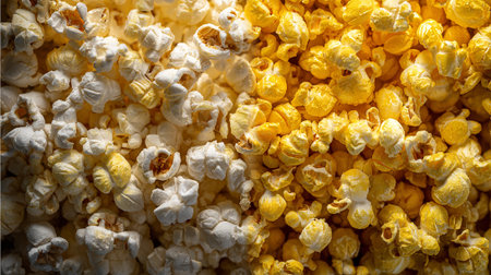 Contrasting textures: Yellow versus white popcorn kernels in an overhead studio shot