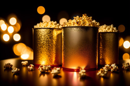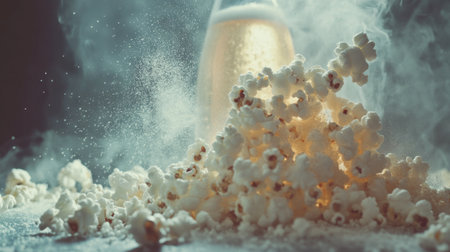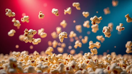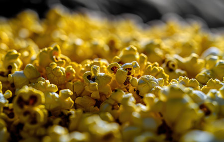 A mouth-watering close-up illustration of popping popcorn. Created using generative AI technology.