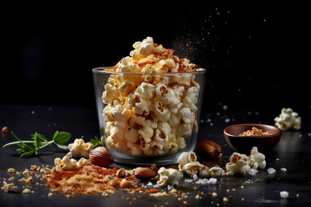 popcorn in a glass, a delightful snack for a home movie evening, Ai Generated.