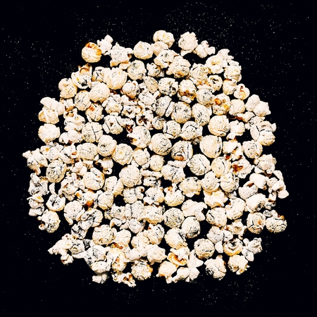 top view pop corn on a black background
