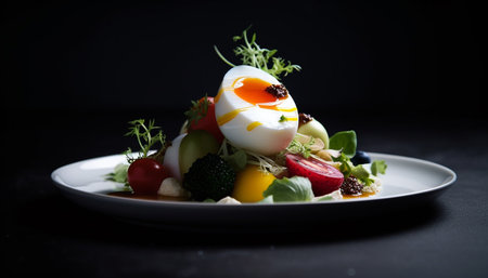 Fresh gourmet salad plate with healthy vegetarian ingredients and garnish generated by artificial intelligence