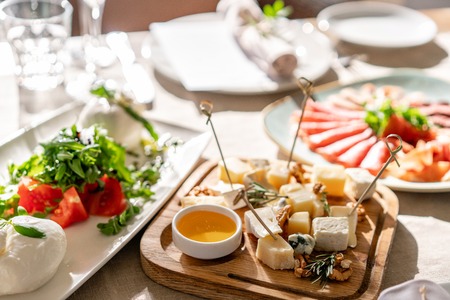 Mixed italian food plates on table