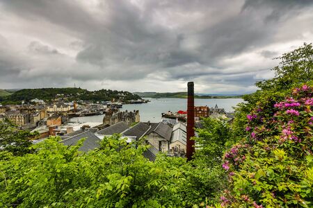 SCOTLAND, UNITED KINGDOM - MAY 30, 2019: Heart of Oban city top view. Oban is popular resort city in the west of Scotland.