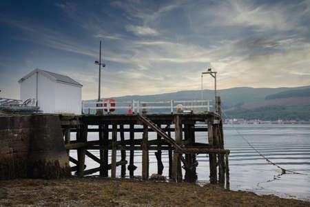 Abandoned old Victorian wooden pier building at Dunoon