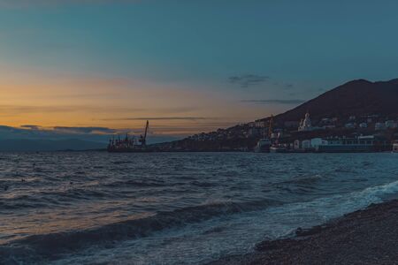 Petropavlovsk-Kamchatsky, Russia. Seascape with sunset and coastline views.
