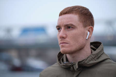 beautiful dark-haired guy portrait in gloomy day. High quality photo