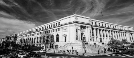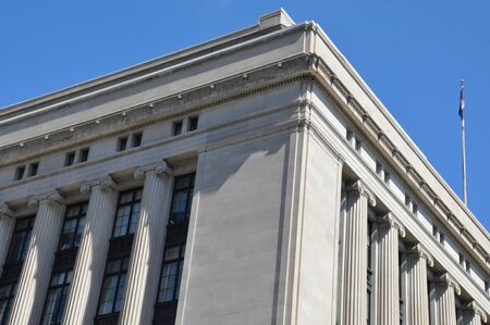 Washington DC USA - October 28 2014; Brutalist architecture of J Edgar Hoover building, home of the FBI