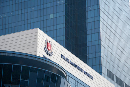 Singapore- Mar 26, 2020: View of Police Cantonment Complex facade on New Bridge Road. It is home to the Central Police Division and a number of other departments.