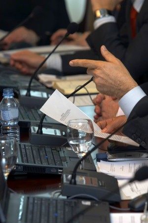 People at business conference, corporate presentation or political meeting