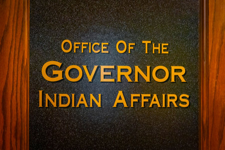 A door sign for the Office of the Governor Indian Affairs is captured, representing a vital part of state administration focused on relations with tribal nations