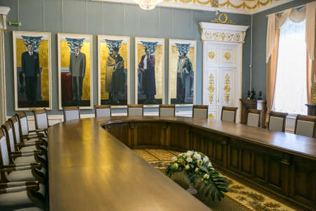 Trenton, New Jersey, United States of America – September 6, 2016. Senate Majority Conference room of New Jersey State House in Trenton, NJ. Designed to house the Supreme Court, this room now quarters the Senate majority caucus. A caucus is a gathering