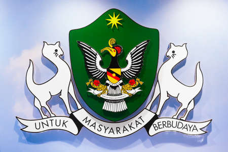 Kota Kuching Utara (North Cat city ) relief coat of arms on wall. This emblem is in public domain. Kuching is popular travel destination on Borneo island and capital of Sarawak state in Malaysia.