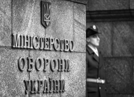 KYIV, UKRAINE - Dec. 06, 2018: Signboard of Ministry of Defense of Ukraine
