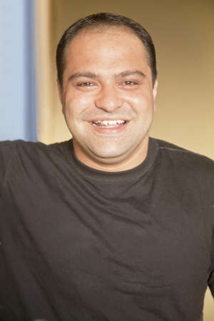 Portrait of handsome bearded Hispanic man indoors