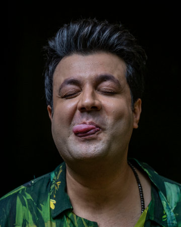 Happy moment of handsome indian man