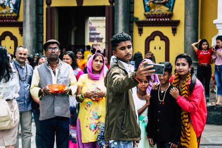 Kathmandu Nepal August 27, 2018 View of unknowns Hindu people visiting the Pashupatinath temple in the morning