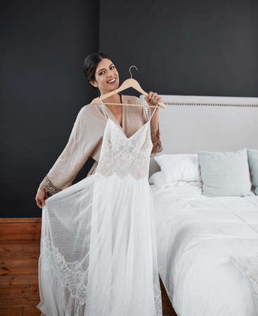 My big days finally here. Cropped portrait of an attractive young bride getting ready for her wedding ceremony in her bedroom.