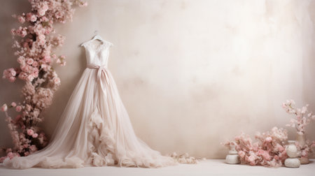 Beautiful wedding dress hanging on the wall