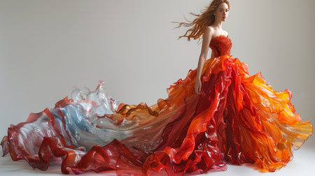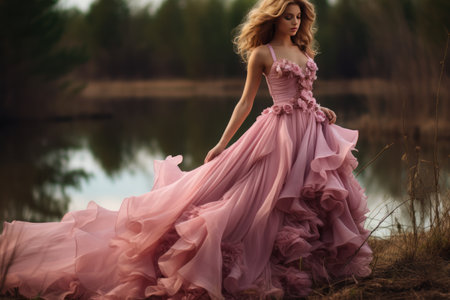 fashion photo of beautiful woman in a long luxurious dress posing. ai generative.